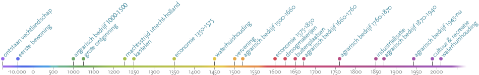 Na een stevige machtsstrijd tussen de graven van Holland en de Utrechtse bisschop –de kastelen langs de Vecht herinneren hier nog aan- waren de grenzen tussen het Sticht en Holland 1350 vastgelegd. Inmiddels was het land ook ontgonnen. Door vernatting en turfwinning ging echter steeds meer akkerland verloren en werd overgeschakeld op veeteelt.